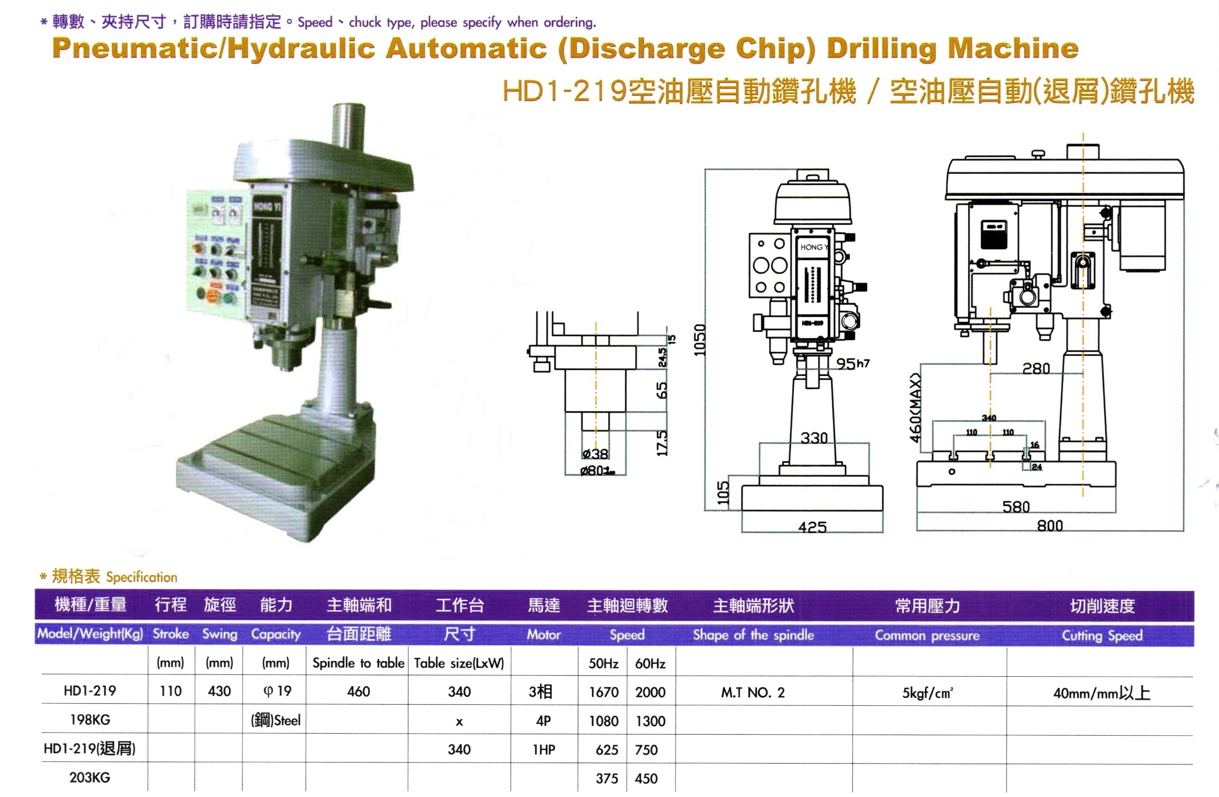 Pneumatic/Hydraulic Auto Drilling Machine / เครื่องเจาะออโต้ รุ่น HD1-219 แบบคายขี้ Brand : HONGYI