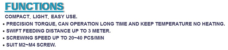 สกรูถูกป้อนด้วยลมจาก Feederไปยังปากจับสกรูอย่างรวดเร็ว ทำให้สามารถขันสกรูได้อย่างต่อเนื่องและมีประสิทธิภาพ