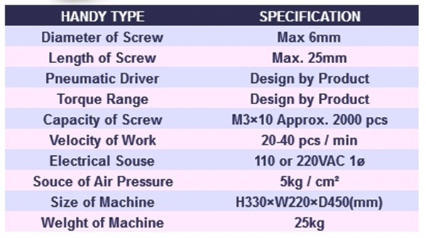 HANDY TYPE AUTOMATIC SCREWING MACHINE/เครื่องขันสกรูอัตโนมัติ
