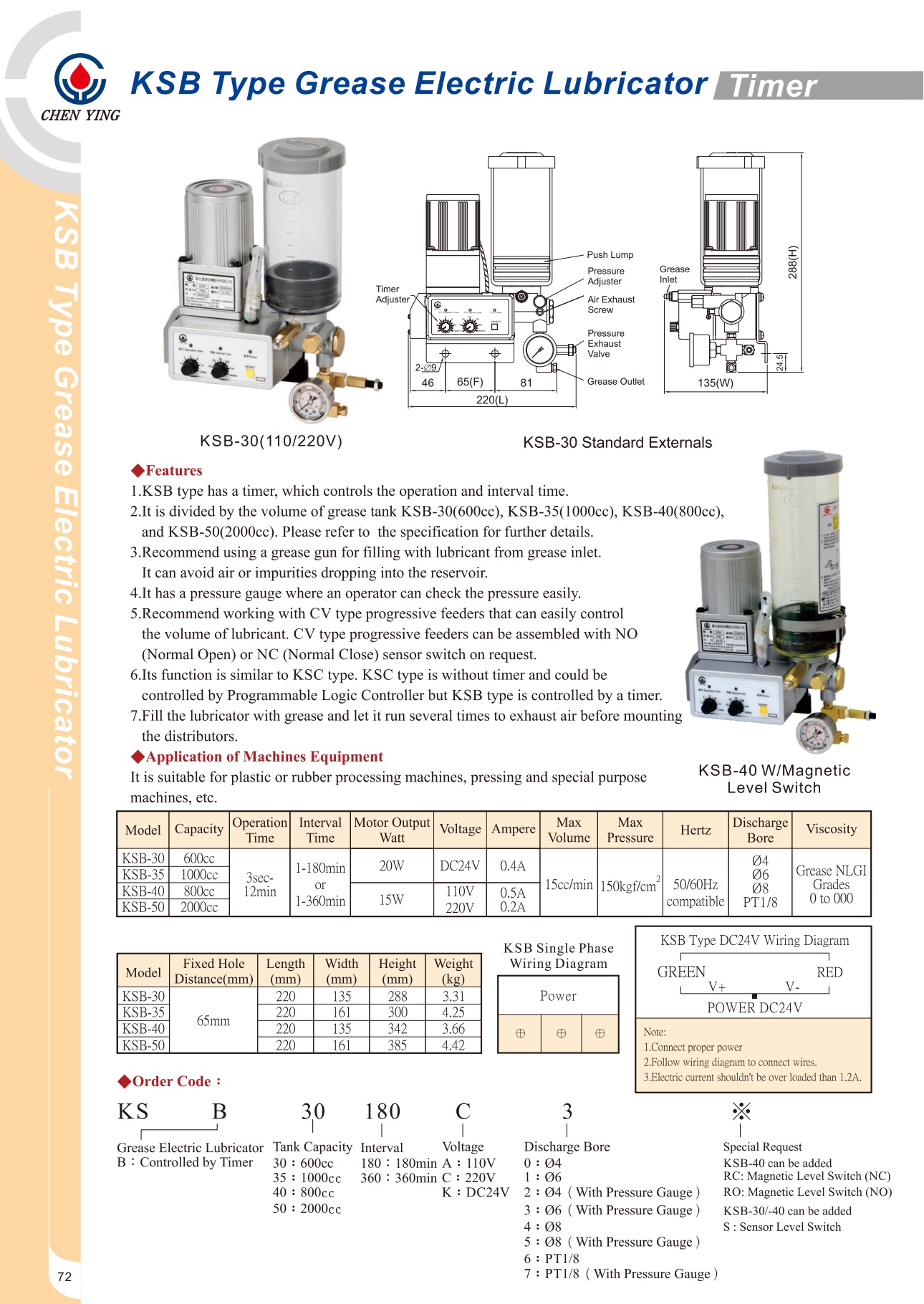 KSB TYPE GREASE ELECTRIC LUBRICATOR/ตัวจ่ายจารบีแบบออโต้ [TIMER] Brand : CHANGHUA CHEN YING OIL