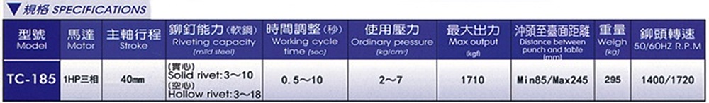 LARGE VERTICAL PNEUMATIC RIVETING MACHINE/เครื่องรีเวท รุ่น TC-185