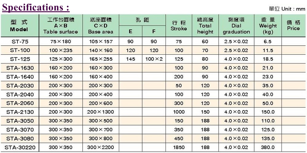 One Way Angte Thread Slide Table [ST], [STA] Brand : LI-CHOU